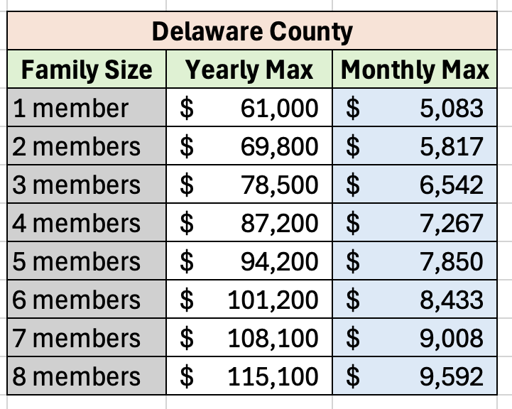 When funding is available, critical home repairs are available to homeowners in Delaware & Union Counties with income below 80% of the county median income. Repairs can be up to $15,000. Our grant funding in 2026 gives priority to seniors residing in Delaware County.